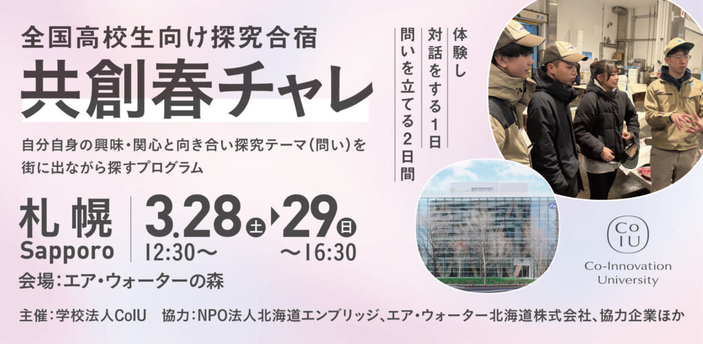Peatix【3/28-29開催|札幌】CoIU春の共創チャレンジ『春チャレ』〜高校生向け体験プログラム~