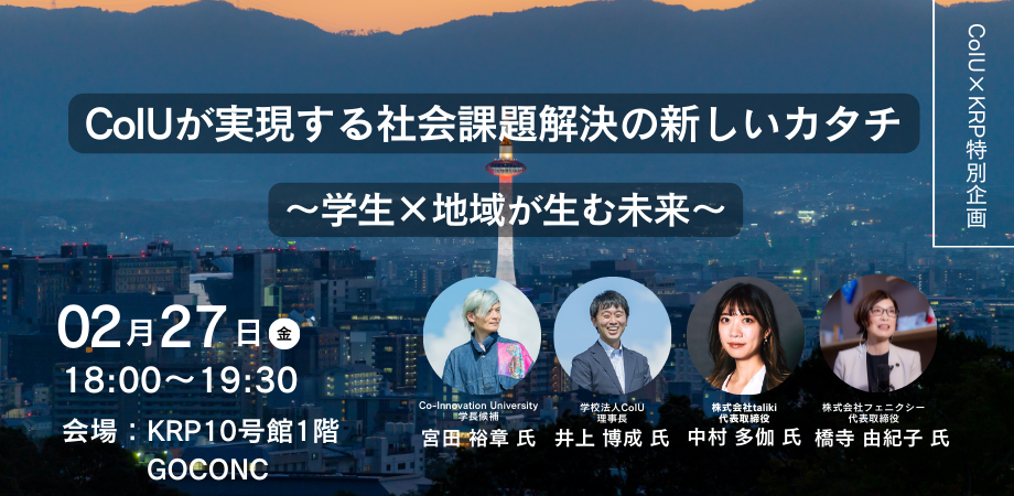 Peatix【2/27開催|京都】CoIUが実現する社会課題解決の新しいカタチ~学生×地域が生む未来~