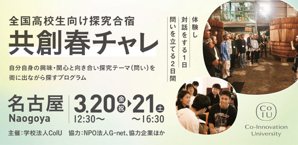 Peatix【3/20-21開催|名古屋】CoIU春の共創チャレンジ『春チャレ』〜高校生向け体験プログラム~