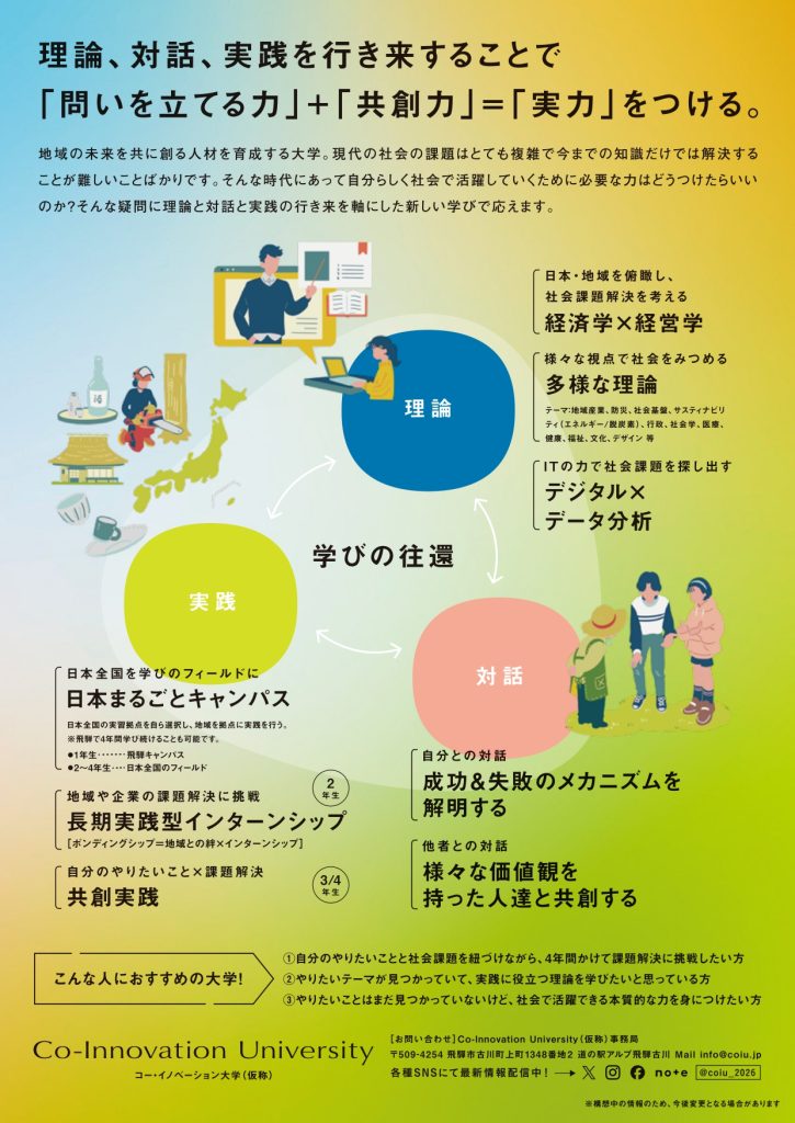 CoIU(仮称)の学びを体験できる授業、大学の特色がわかる説明会、