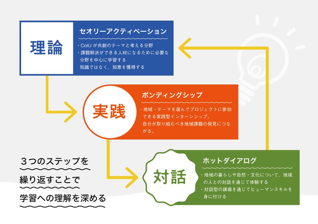 新たな価値創造のために、「理論」・「実践」・「対話」を往還するプロセスを通じて、各学問領域における成果を統合し、また、自らの所属する国や地域、組織・立場を越境し、他者との絆を結びながら、課題解決および社会変革を実行していく力を備えた人材の育成を構想しています。