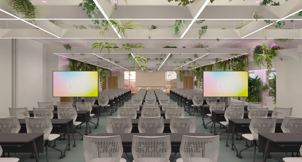 一学年120名全員が同時に授業に参加できる、CoIUとしては最も大きな講義室や、研究室を配置する 予定です。