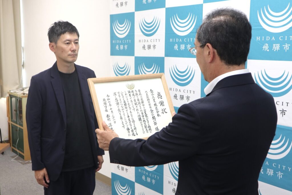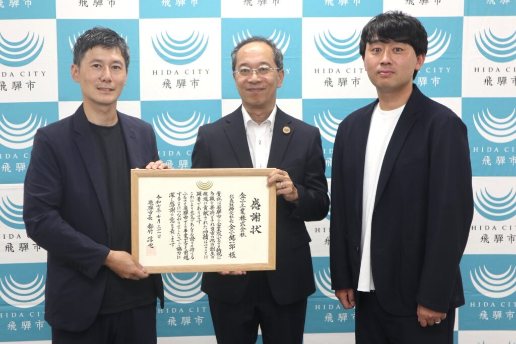 2026年開校予定のCoIU設立基金 飛騨市企業版ふるさと納税を通じて、金子工業株式会社様より寄附を受領 令和7年7月31日(木)に感謝状贈呈式を開催