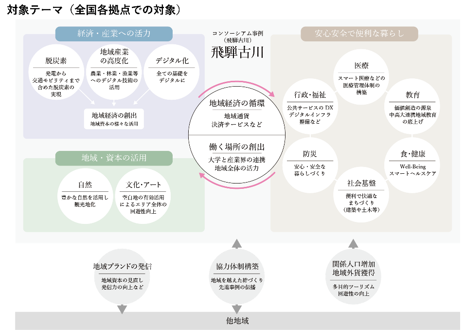 ◆対象テーマ:脱炭素、農業・林業・漁業等の産業の高度化、デジタル、文化・アート、自然、場づくり、循環、行政・福祉・防災、医療、社会基盤、食、健康、教育、ブランド発信、関係人口増加 等