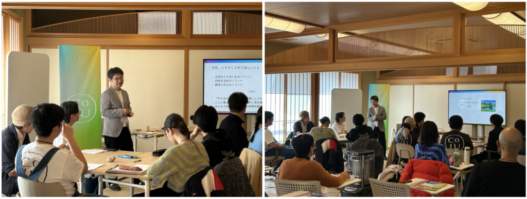 はじめに、大学の理念やカリキュラム、地域に深く入り込む「長期実践型インターンシップ(ボンディングシップ)」など、CoIUならではの学びの特徴について説明を行いました。