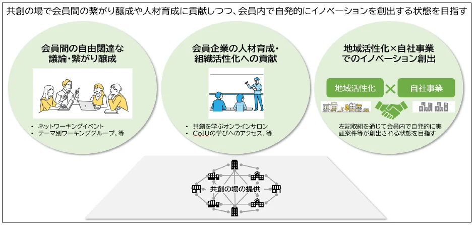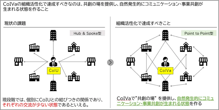 ※CoIVaで「共創の場」を提供し、自然発生的にコミュニケーション・事業共創が生まれる状態を作る。