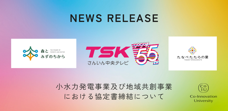 山陰中央テレビジョン放送株式会社、株式会社たなべたたらの里、株式会社森とみずのちからと一般社団法人 CoIU設立基金が小水力発電事業及び地域共創事業における協定書を締結しました。