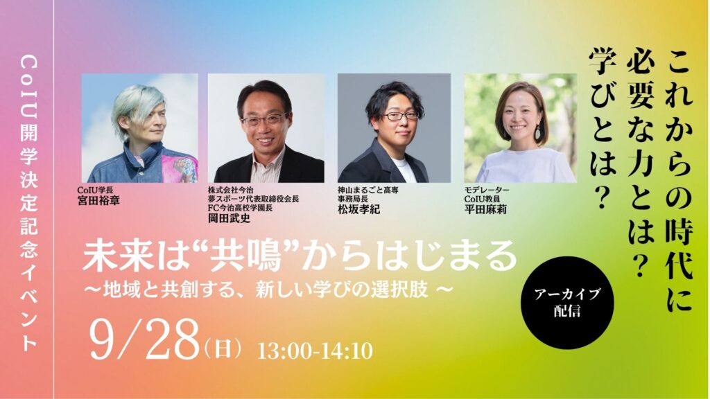 CoIU サテライトキャンパス全国15か所 “受験料0円”入試制度などを開学発表会にて発表 9月28日(日)CoIU開学記念イベント・10月20日(月)Co-Innovation Summit開催